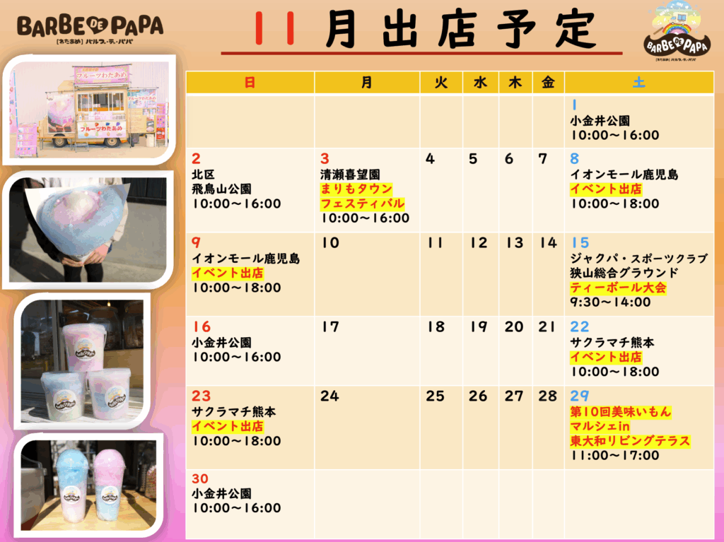HOME > 出店予定・キャンペーン・お知らせ > 出店予定・キャンペーン・お知らせ 出店予定 【11月出店予定】 おいり増量キャンペーン!! 今月も引き続き、ご購入時にインスタグラムフォロー画面提示で 「おいり増量」キャンペーン実施中!! ぜひこの機会をお見逃しなく! お知らせ