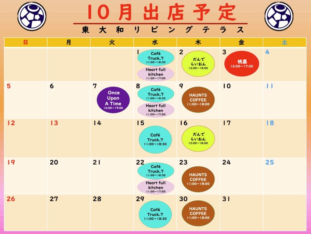 東大和リビングテラス 10月 キッチンカー出店予定